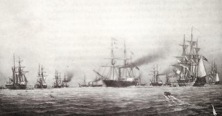 Waffen, Schiffsmodelle und Bilddokumente im Haus Borgstede & Becker geben einen Einblick in die Geschichte der ersten deutschen Flotte. Die Lithografie „Gefecht vor Eckernförde“ zeigt die Küstenbatterien des Deutschen Bundes im Kampf mit dänischen Schiffen. Eines davon war die Fregatte GEFION. Sie fiel während des Gefechts in deutsche Hände und wurde in ECKERNFÖRDE umbenannt. Ein Modell des Schiffes können Sie im Museum besichtigen. Vor dem Telegraphen an der Kaje liegt außerdem ein Anker der in diesem Gefecht gesunkenen dänischen CHRISTIAN VIII.