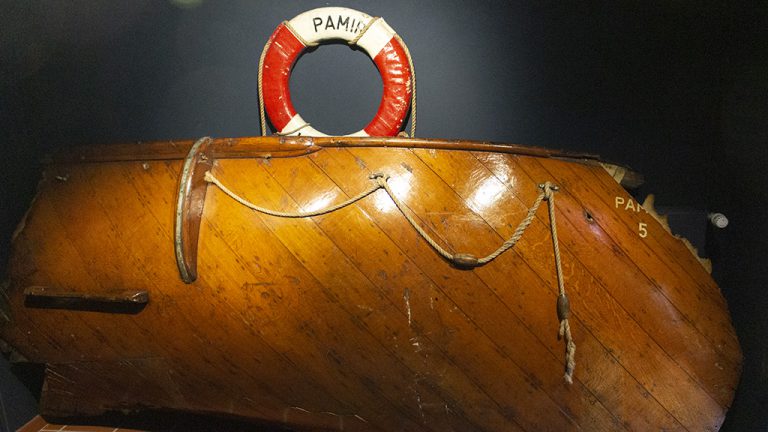 Erfahren Sie mehr über den harten Bordalltag auf den Walfängern des 19. Jahrhunderts, seemännische Volkskunst und exotische Seemannssouvenirs aus aller Herren Länder. Schiffsmodelle, zahlreiche „Kapitänsbilder“, Galionsfiguren, Halbmodelle sowie das Fragment eines Rettungsbootes der PAMIR ergänzen die Schausammlung im Telegraphen.