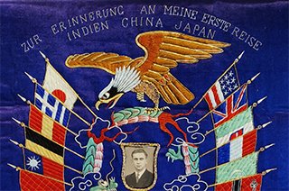 Von dieser ersten Reise brachte Rudolf Lell ein typisches Seemanns-Souvenir aus Ostasien mit: Ein Seidentuch mit Applikationen der damaligen deutschen Handelsflagge – zu jener Zeit mit dem Symbol des Hakenkreuzes versehen – , der Nationalflaggen jener Länder, die das Schiff auf seiner Reise angelaufen hatte (Niederlande, Italien, Saudi Arabien, China, Japan) nebst einem Konterfei des Schiffes und einem Porträtfoto seiner selbst. Am 12. August 1939 lief das Schiff mit Rudolf Lell an Bord erneut von Hamburg in Richtung China und Japan aus. Am 25. August wurde die Schiffsleitung angewiesen, umgehend einen neutralen Hafen anzulaufen. Spätestens am 28. August 1939 erreichte die COBURG den italienischen Hafen Massaua in Eritrea. Wie viele andere deutsche Seeleute auch sollte Rudolf Lell seine Heimat erst 1946, nach dem Ende des Zweiten Weltkrieges wiedersehen. Mit dem weiteren Schicksal von Schiff und Besatzung befasste sich Jahrzehnte später die Historikerin Judith Kestler, die zugleich Enkelin Rudolf Lells ist. Sie übergab dieses Erinnerungsstück aus dem Nachlass ihres Großvaters dem Schiffahrtsmuseum der oldenburgischen Unterweser, dessen Archiv es nunmehr bereichert.
